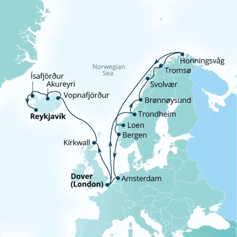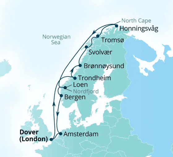 Seabourn is one of my favorite cruise lines and this 21 day Norwegian Fjords & Icelandic Intrigue departing May 16/2026 is a fantastic itinerary and you can view more information about it and see the pricing by clicking on the capital letters SEABOURN 21 DAY NORWAY and have put the map below:
